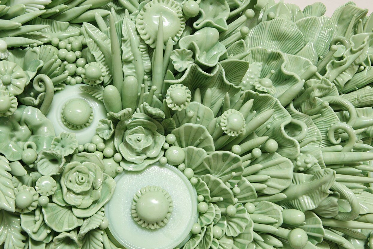 What/Why: “Amber Cowan: Re/Collection features the flameworked glass creations of Philadelphia artist Amber Cowan. Her intricate vessels and sculptures are comprised of a multitude of recycled vintage glass specimens, all fused together into spectacular one-of-a-kind art objects. Her ongoing practice involving American pressed glass explores the history of U.S. glassware manufacturing while giving new life to reclaimed material.”