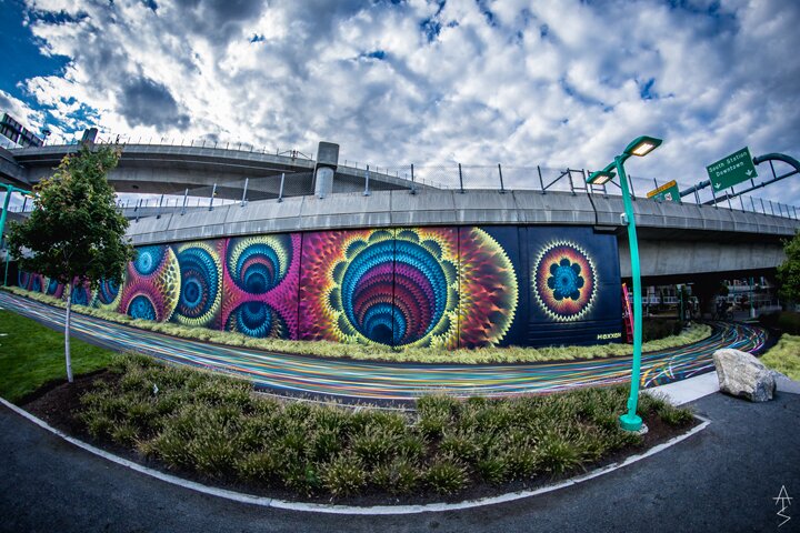 What/Why: “Patterned Behavior by Silvia López Chavez has transformed and enlivened an unwelcoming concrete underpass along the The Charles River Esplanade by creating a striking, joyful mural that echoes the beauty, diversity, and energy of Boston.