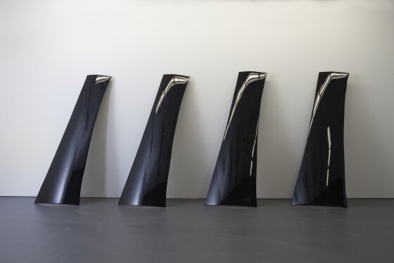 What Remains includes sculpture created over the past two years and records a period of transition as the artist moved beyond his well-known Elm Tree Project. Carbon composite, which appears in his work as early as 2009, takes primacy. The elm slabs are cast in or covered over with carbon composite. While the earlier slabs retain their association with the wood surface, as time passes and the series progresses, the link to the organic is broken. The black surfaces of the large slabs are marked alternately, by the inherent pattern of carbon fiber fabric, by a sensuous and rich matte black, or—in an grouping of near-identical planks—by high-gloss surfaces that reflect and mirror light sources and viewers.