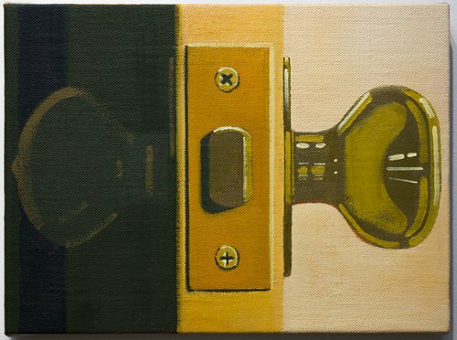 Palocci’s solemn still life paintings incorporate a human presence without its literal portrayal. Each object begins to suggest situations and personalities alluding to someone present in Palocci’s life and yet, absent in the painting. Clues of specific individuals are revealed through the experience of an object. A bar of soap sculpted by its user takes on a monolithic presence and emotional weight, as it occupies the majority of space and attention within its’ confines. Palocci photographed this bar of soap in the bathroom of a recently deceased friend. In his painting derived from this photo, muted color and tender brush strokes speak to Palocci’s memory and homage to a loved one.”