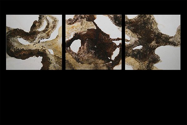John Hayes-Nikas’ series of large graphite drawings are rendered with elegant abstract formalism. With their subtle contrast between clearly-delineated negative space and more gestural strokes, the works invoke aspects of early Cubism, while the mysterious push and pull of the dark forms reference pre-Christian sacred spaces.