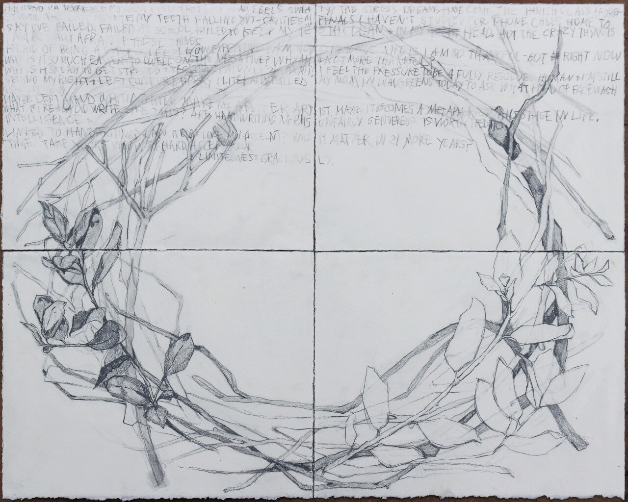 What/Why: “How to trouble the effortless being-inside? Working texts and images into and against one another, making objects to find what is impossible in thought, inking paper to trouble what comes too easily to mind. Proceeding by analogy, a laddering of relation, a studied cultivation of difference. Tending to all that lives by the logic of turning, stubbornly insisting on representing the hand that grounds the turning. Seeds and seating, cutting open, bringing home.”