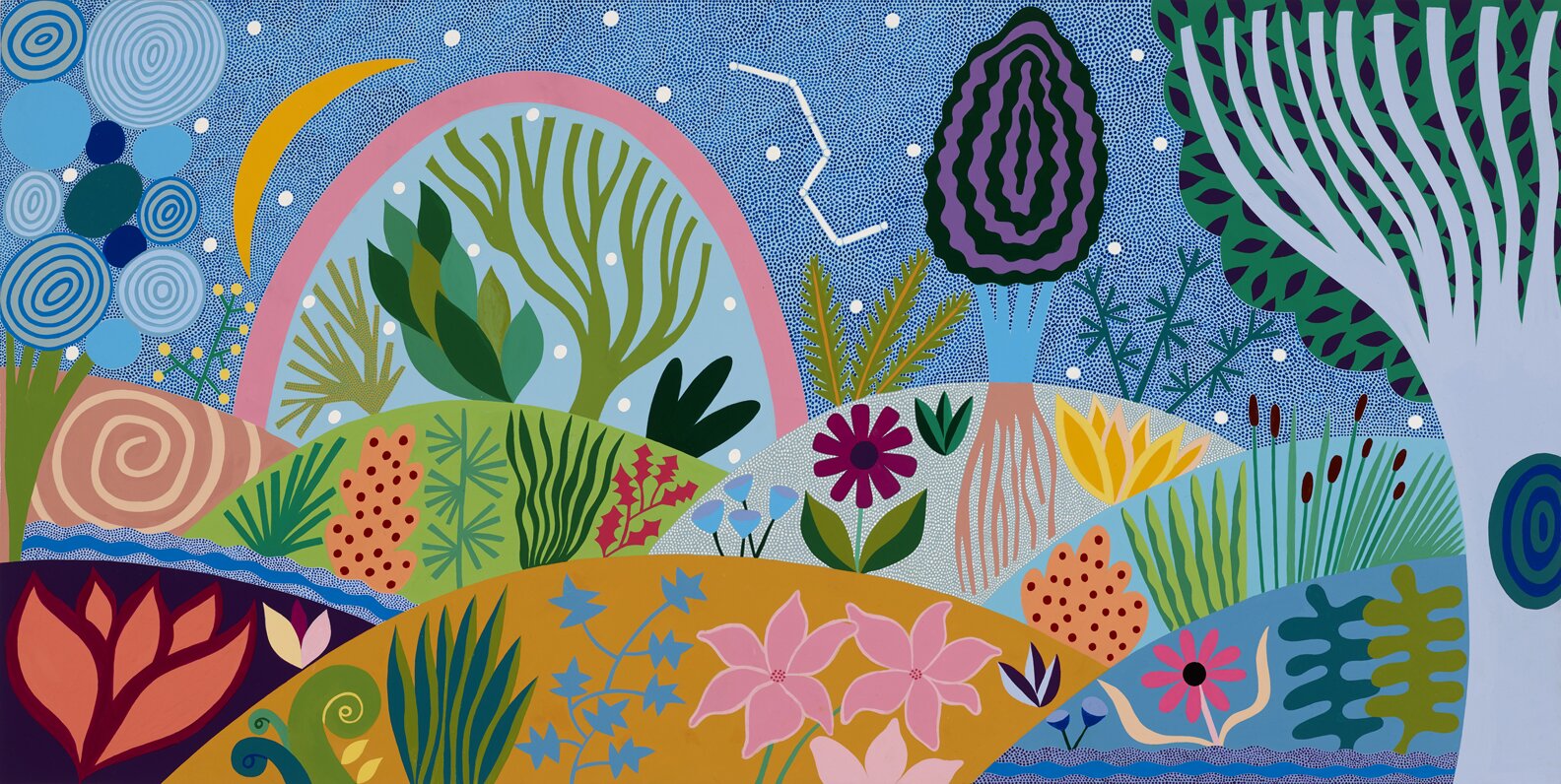 FLUX—Six Artists Respond to Uncertainty explores the experience of uncertainty, upheaval, and unrest. The artists, all women, offer specific reactions to impact and change, each with a unique scope. Some look inward to explore and affirm personal history, autonomy, and authenticity in the face of a changing world. Others look around at the evolving landscapes of society and the natural world and respond to the ideals and communities they see being built or altered.