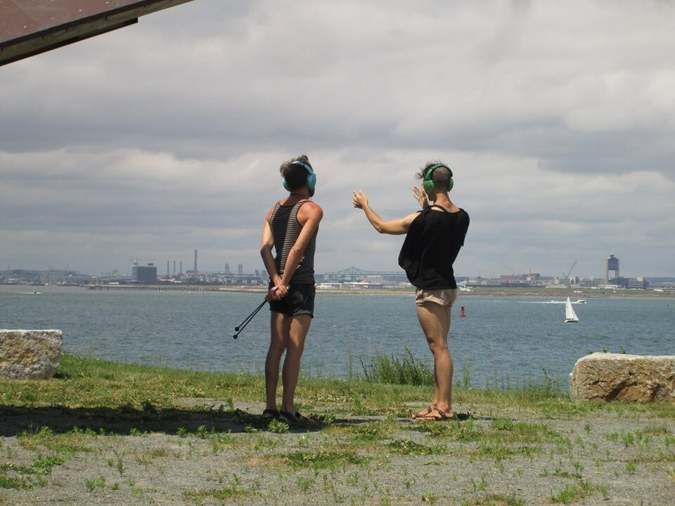 (image of participants from Dirk Adams’ 07.25 performance on Spectacle Island, pssst! Photo courtesy of the artist)