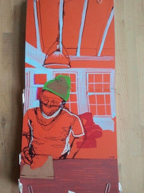 These pictorial vignettes from her trip not only serve as a record of her experiences and surroundings, but also document her progression and development as an artist. Autumn’s earlier sketchbooks were shown at the FLUX. Offline opening reception.