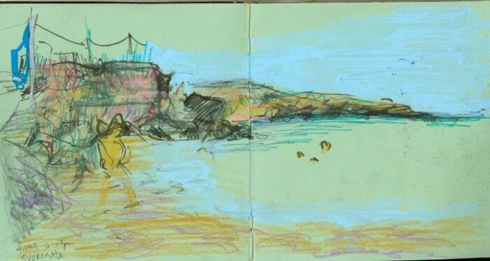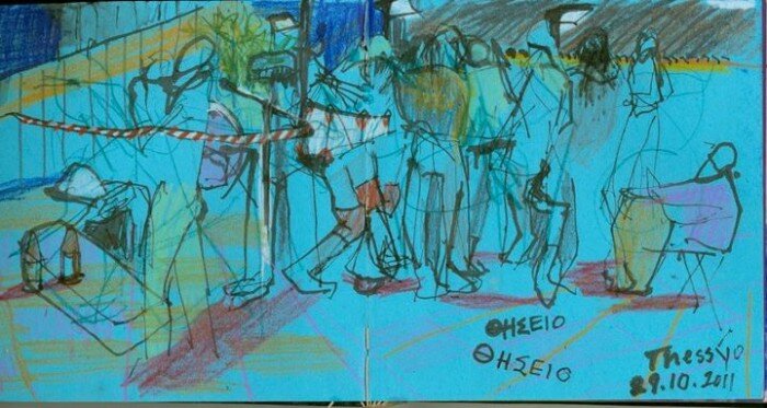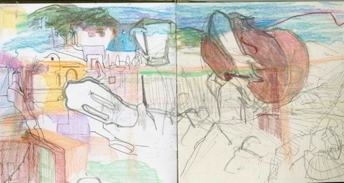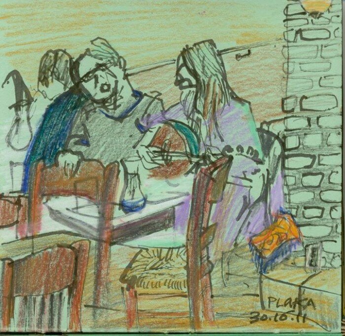 With her current sketches from Greece, I find it interesting that I understand so much about her experiences abroad without having it spoonfed to me through a lengthy self-indulgent travel livejournal blog.