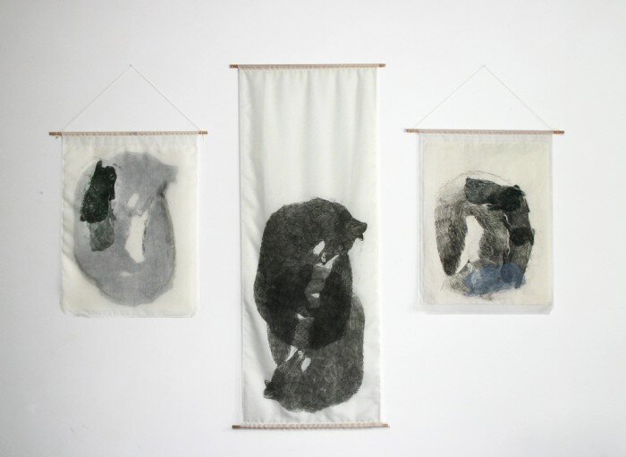 “The metamorphoses I have experienced throughout my creative career, both personally and artistically continue to be sources of fascination that inform my work. The cycles of repetition, flux and reincarnation that occur while I am producing prints are factors that resonate with me conceptually and begin conversations. By transforming the surface and implementing other experimental methods, I am able to build upon these dialogues while giving impetus to new projects. The veil-like qualities and regenerative elements of printed materials define my process of conceptualization; materials and media are used to solidify personal spiritual reflection and experiences.”