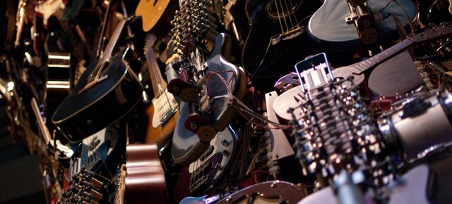 What/Why: “Trimpin’s computer-driven musical contraptions defy the constraints of traditional instruments. Combining digital technology with everyday salvaged materials, Trimpin has invented ways of playing everything from giant marimbas to a 60-foot stack of guitars using MIDI commands. Taking inspiration equally from the junkyard as the museum and the concert hall, Trimpin often creates these eccentric and interactive instruments from found materials, including saw blades, toy monkeys, duck calls, beer bottles, bunsen burners, slide projectors, turkey basters, and pottery wheels. In his creative experiments, Trimpin engages the visual, spatial, and kinetic properties of sound to “play instruments in such a way that no matter how complex the composition of the timing, it can be pushed over the limits.”
